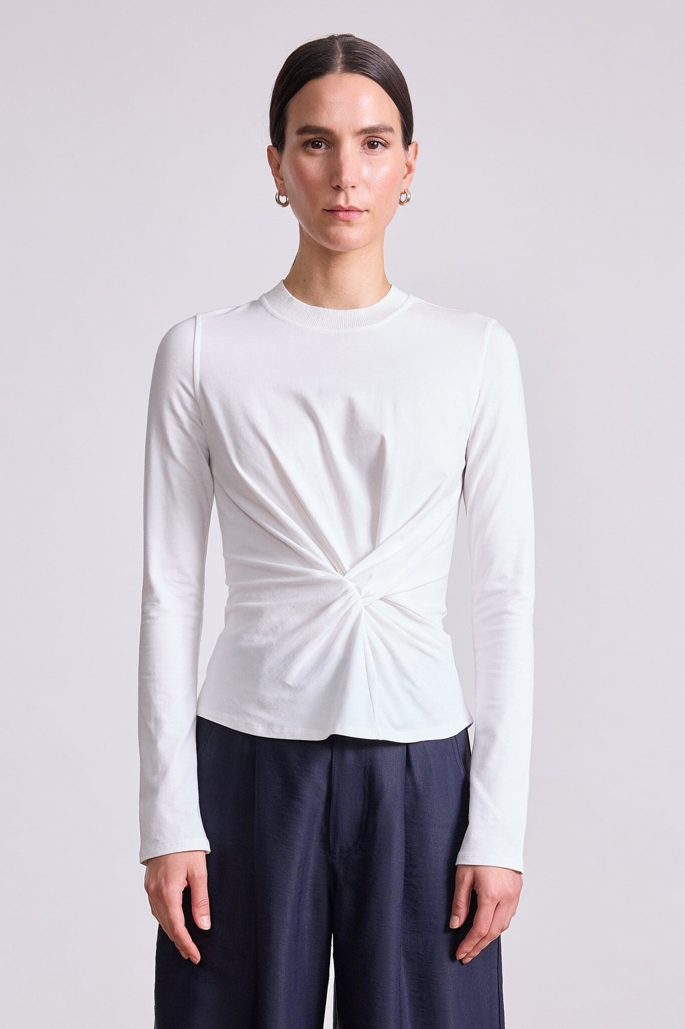 - Crew neckline, long sleeves, rib collar, twist details at front and back