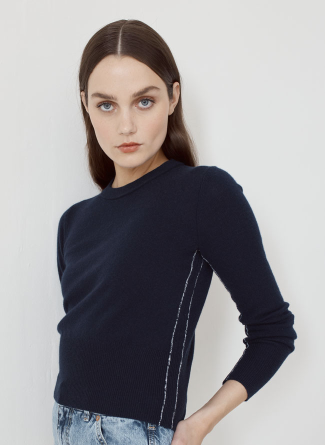 Create an accountCASHMERE CREW W/CONTRAST SIDE SEAM IN NAVY/CHALK