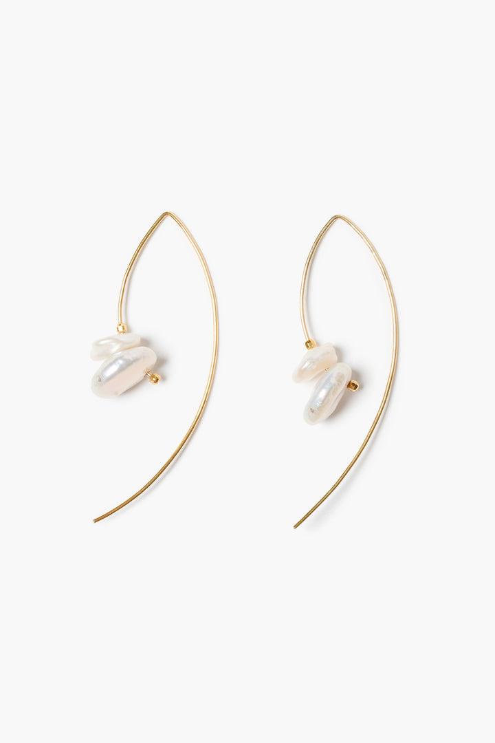 WIRE THREAD WHITE PEARL EARRINGS