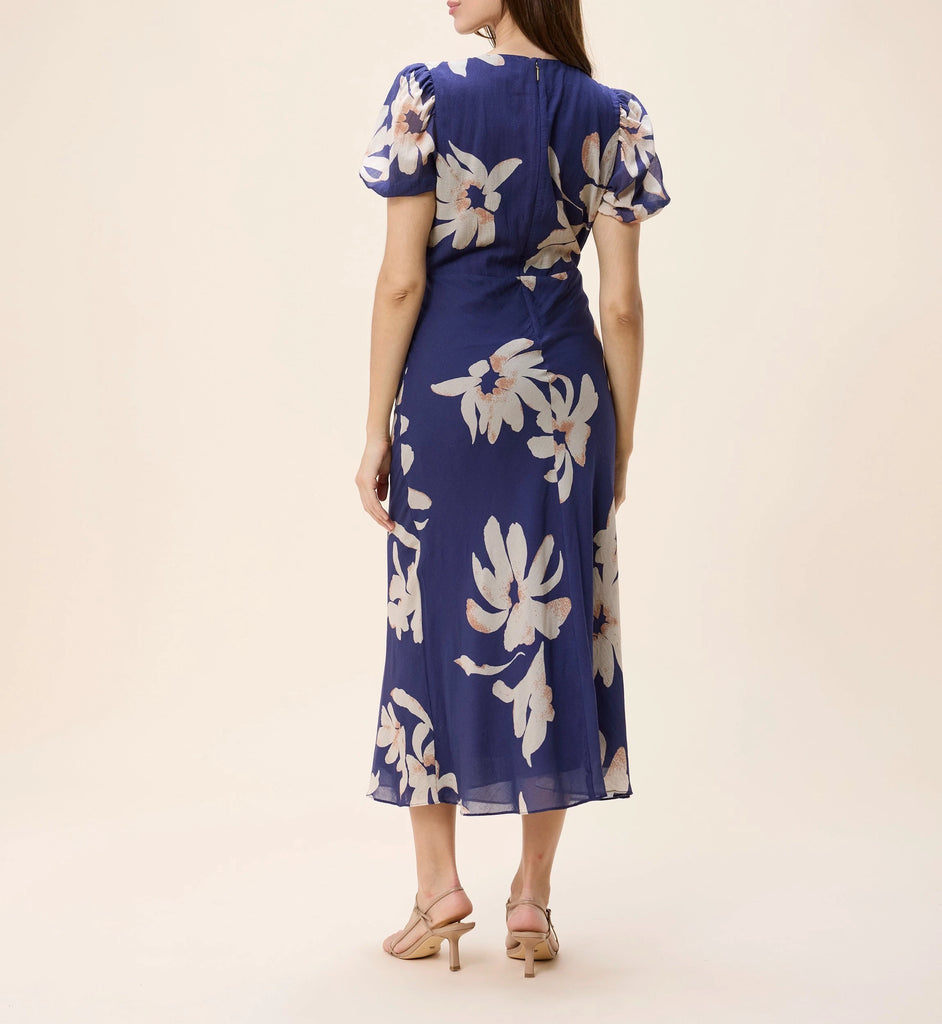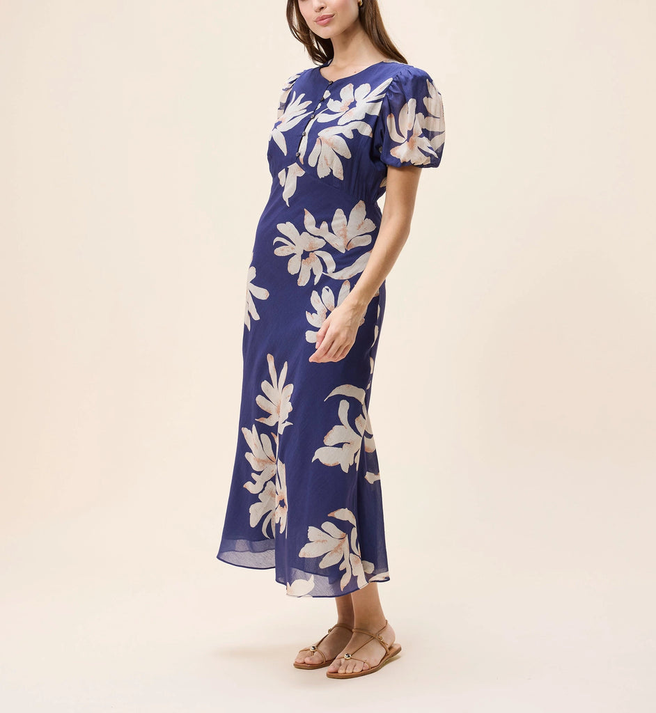 The Jianna Ankle Dress features an elegant silhouette, ethically handcrafted in India. Puff sleeves, an empire waist, and delicate shirring at the bust create a flattering, feminine shape that flows effortlessly with every step.