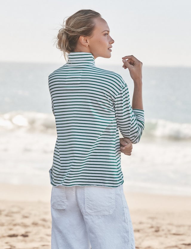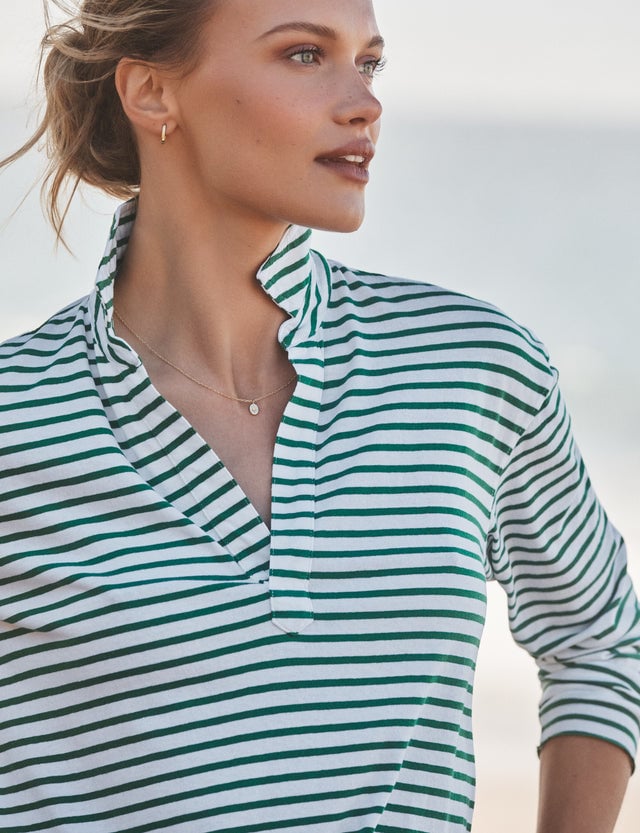 Create an accountPATRICK POPOVER HENLEY IN GREEN/WHITE STRIPE