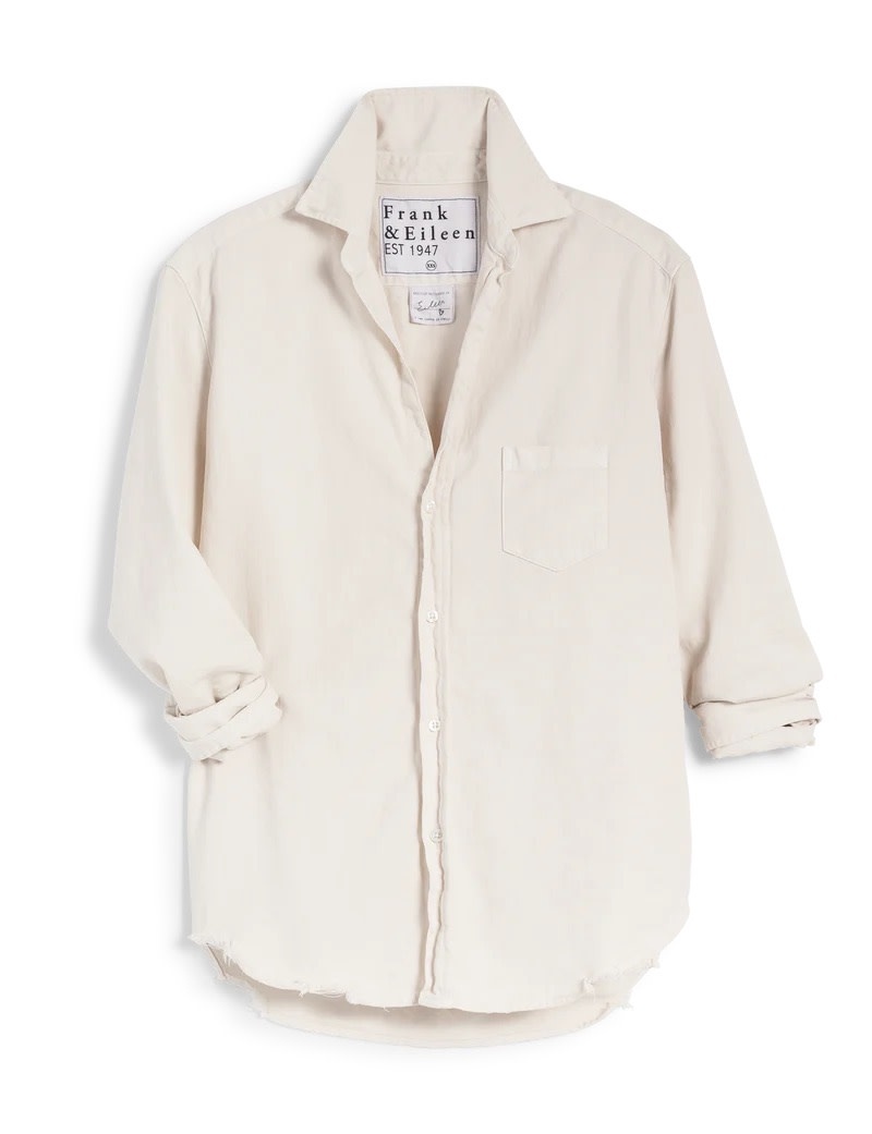- Signature bust flattering button placement and long sleeves with button cuffs
