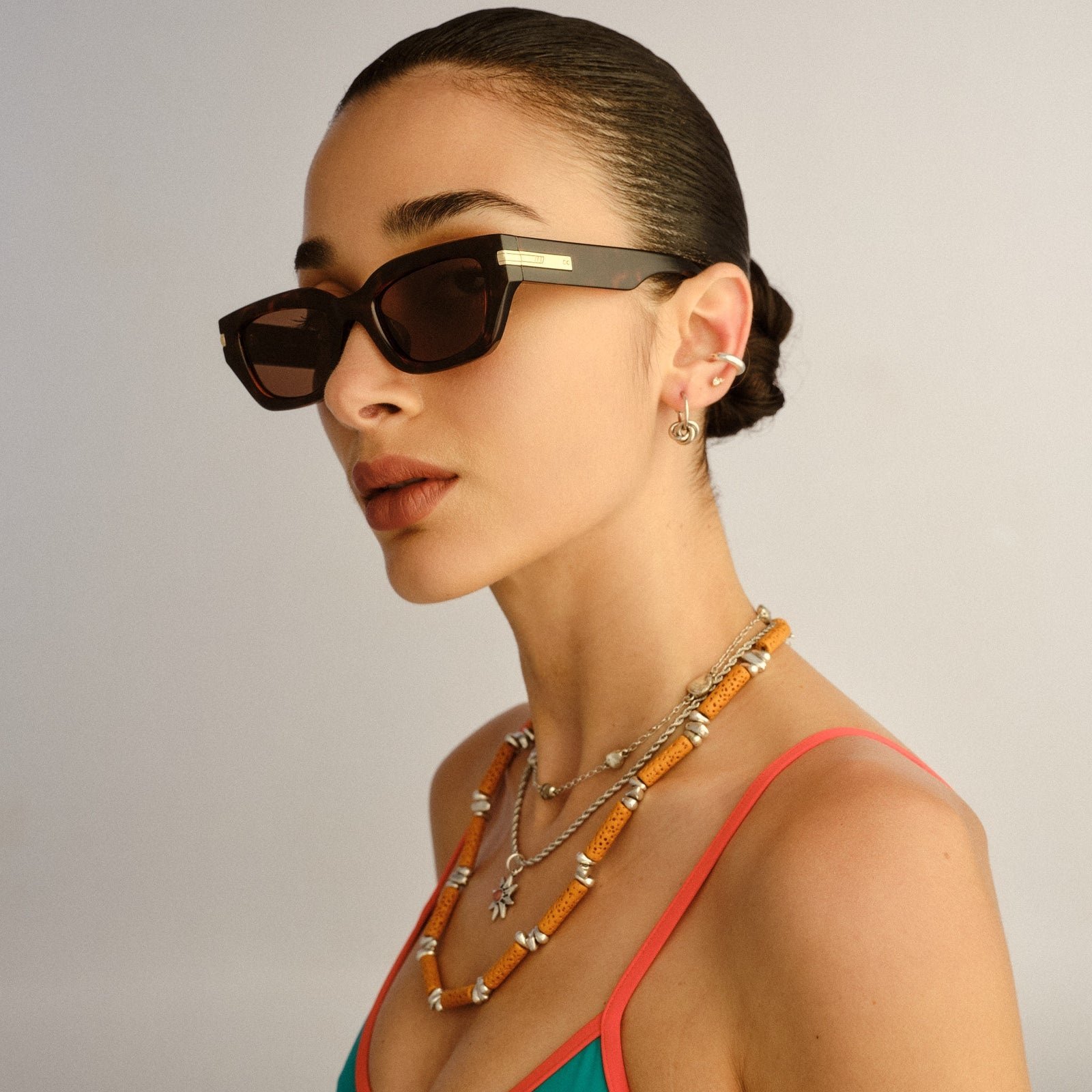 • Finished in a tort frame with brown mono lenses.