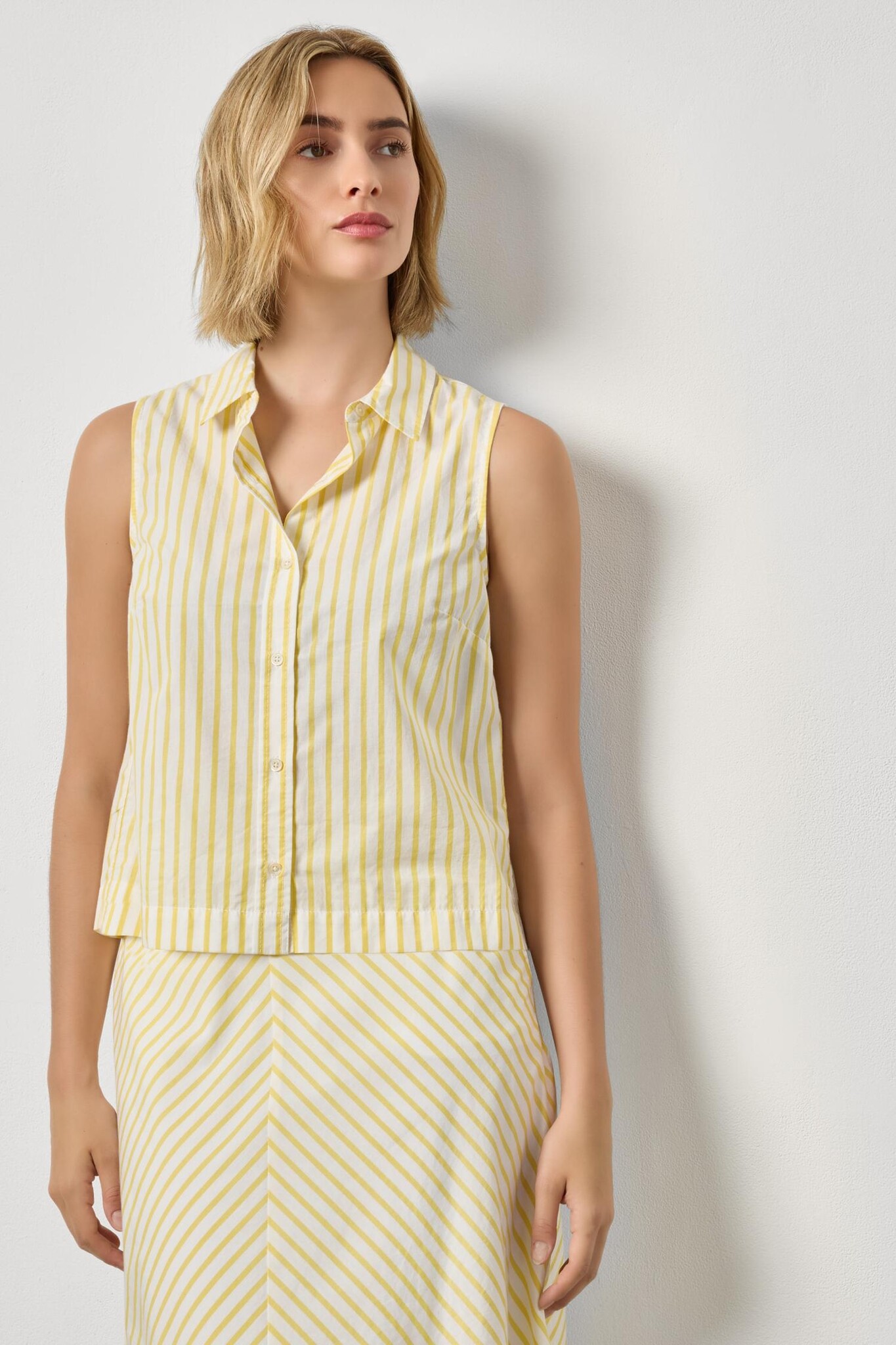 Create an accountSTRIPED SLEEVELESS SHIRT IN SUNFLOWER STRIPE