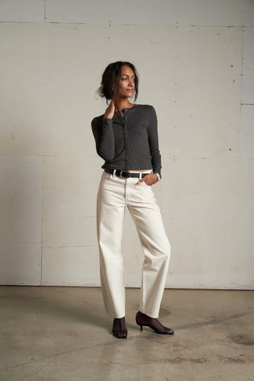 Create an accountMAUREEN LUXE RIB FITTED CARDIGAN IN CHARCOAL