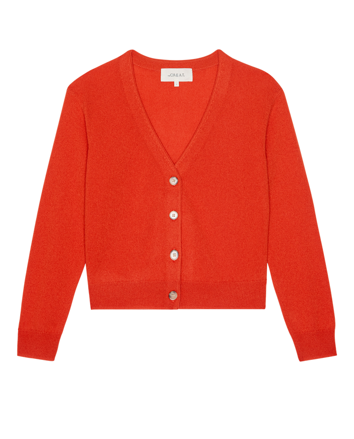 Create an accountTHE CASHMERE TINY V-NECK CARDIGAN IN HOT ORANGE AND SOFT BLUE