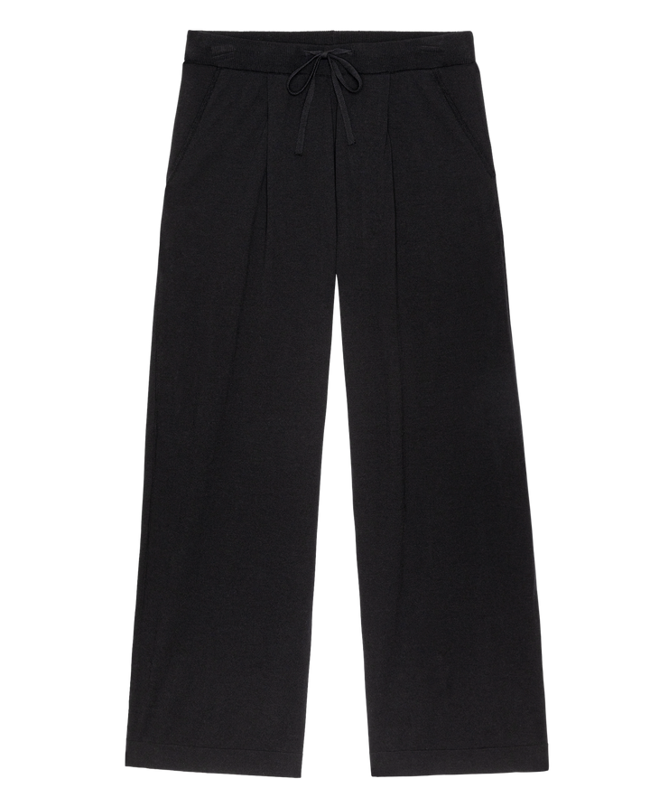 The Relaxed Trouser Pant is an easy pull-on pant designed with a wide leg and long inseam for an effortlessly relaxed silhouette. Soft pleats at the waist add subtle structure, while a ribbed waistband with a delicate tie ensures comfort and ease.