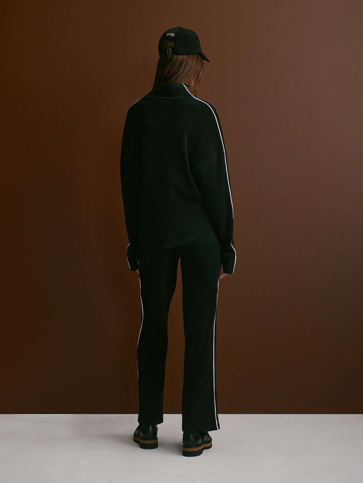 Create an accountBRUSHED RIB STRAIGHT LEG PANT 30" IN BLACK/SNOW WHITE