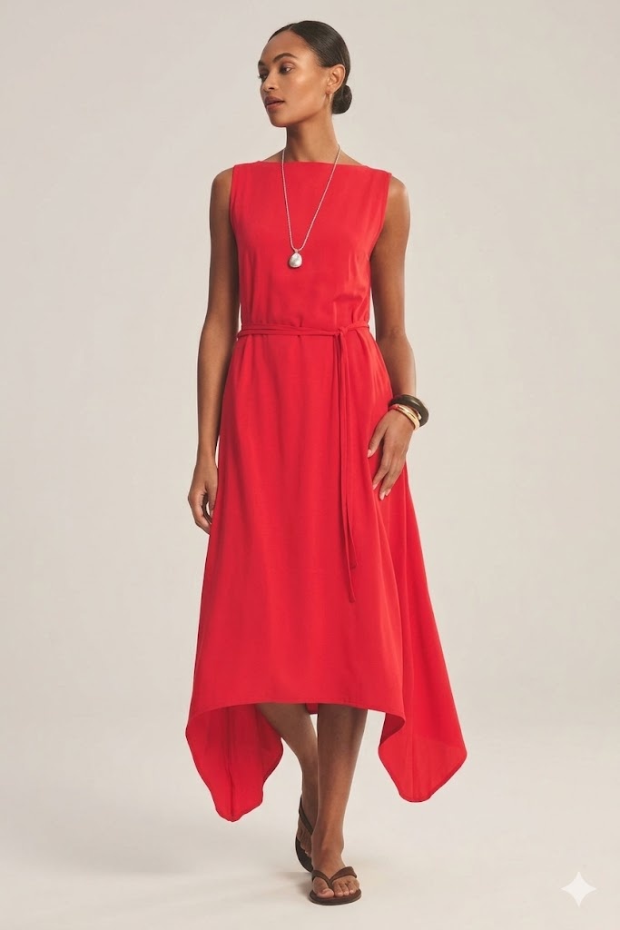 Crafted from our signature gauzy whisper fabric, this dress offers breathable comfort with a double layer for coverage. Featuring a sleeveless silhouette, boat neckline, handkerchief hem, and detachable rope belt. Dressed up or down it's easy and chic.