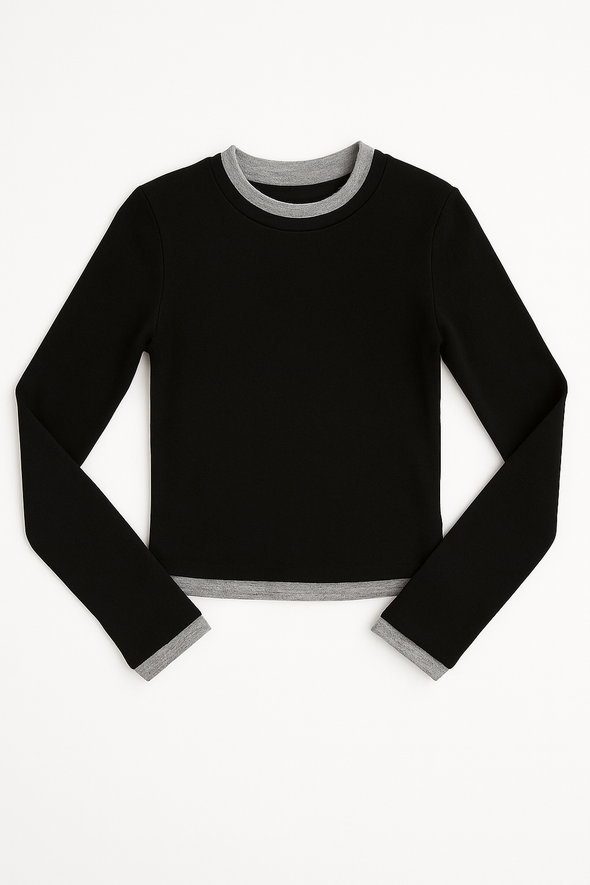 Create an accountNOVATO07 L/S CREW NECK TOP IN BLACK/GREY