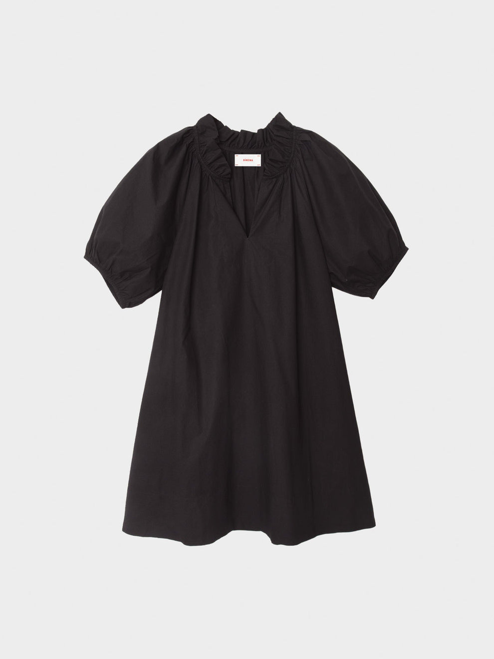 For the Frill of it. Carleigh is new this season in our crisp paper poplin with a refined feel. Carleigh is a femme mini dress featuring a deep V-neck with ruffle detailing, shirred puff sleeves, and side seam pockets.